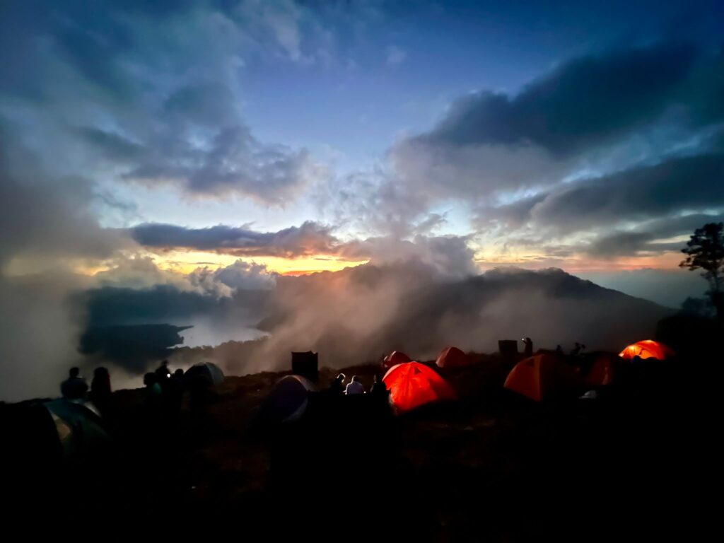 Following lunch, we’ll continue ascending for another 2 hours to the Senaru crater rim (2,641 m). This spot offers breathtaking views, second only to the summit. At the crater rim, we’ll witness an unforgettable sunset overlooking Mount Agung in Bali and the smoke rising from the new volcano near the lake. We’ll set up camp here and spend the night.